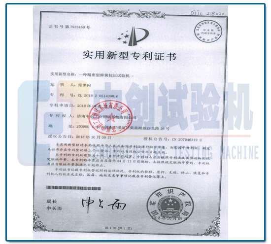 • 弹簧拉压试验机专利证书弹簧拉压试验机专利证书