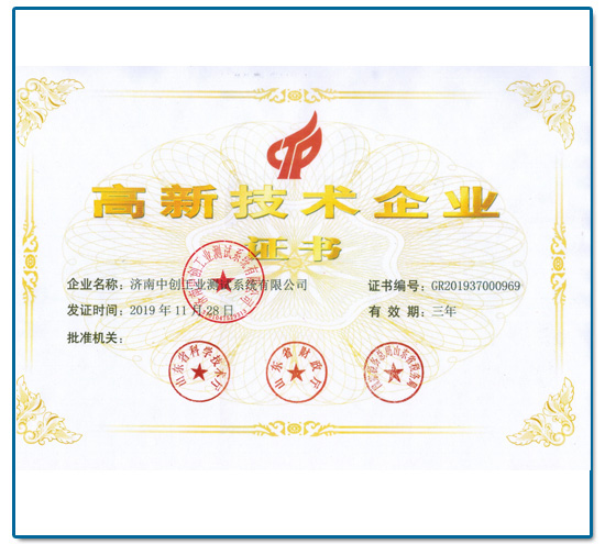 • 济南中创试验机高新技术企业证书济南中创试验机高新技术企业证书